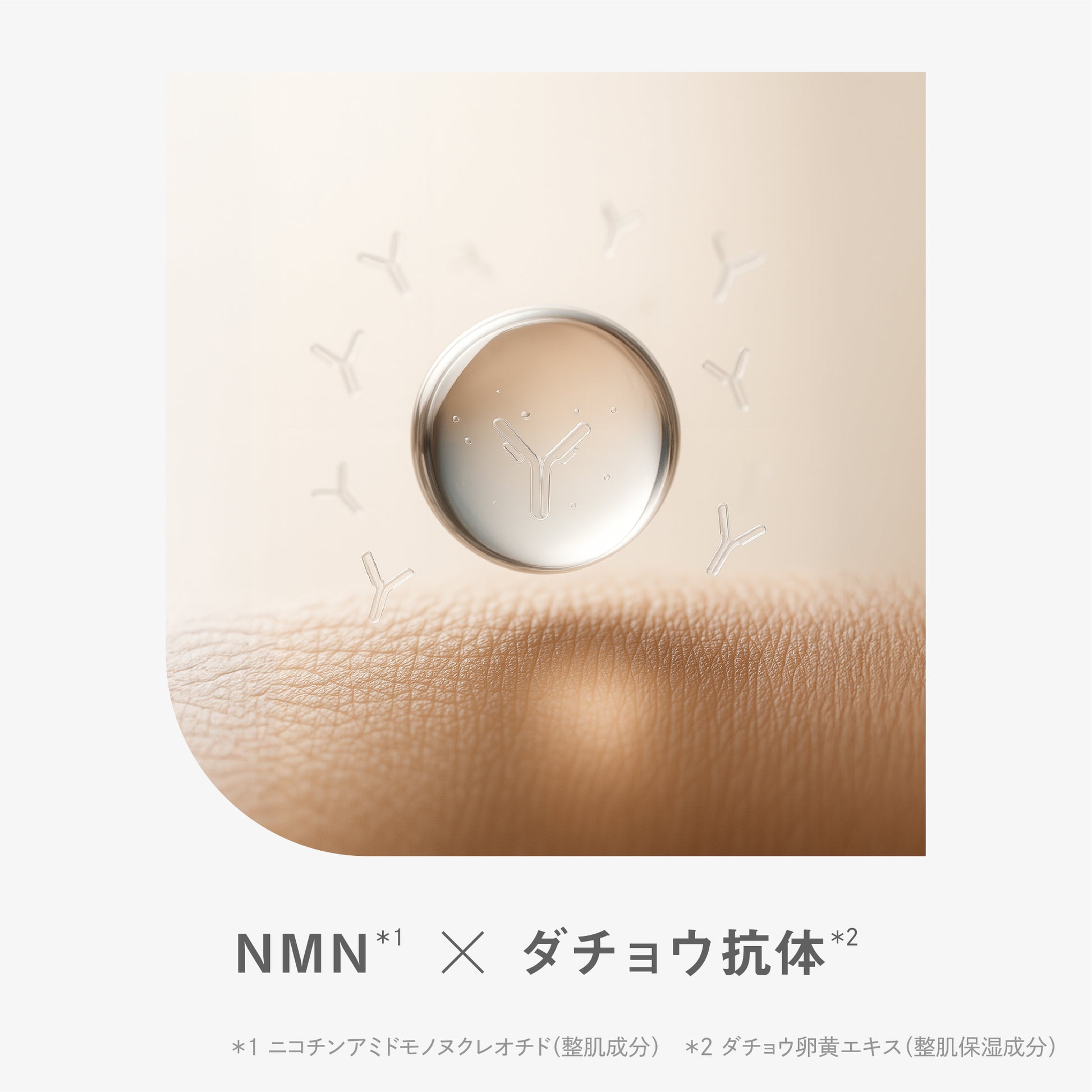話題のNMN*1と整肌保湿成分のダチョウ抗体*22を組み合わせた処方で、年齢や環境変化にゆらぎやすい肌をやさしくケア。