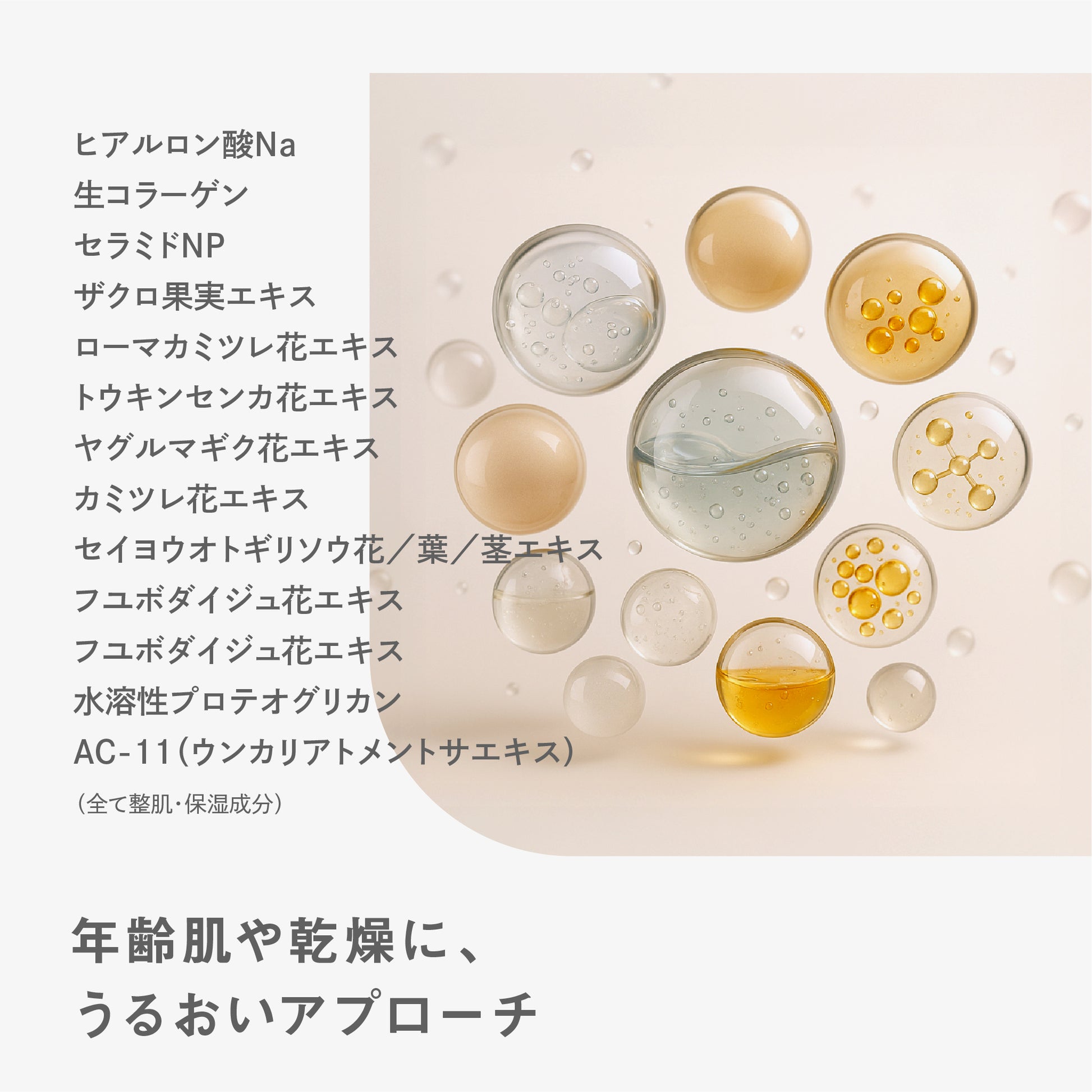 - 毎日のベースケアに、スペシャルケアに、ライフスタイルに寄り添う高保湿設計。