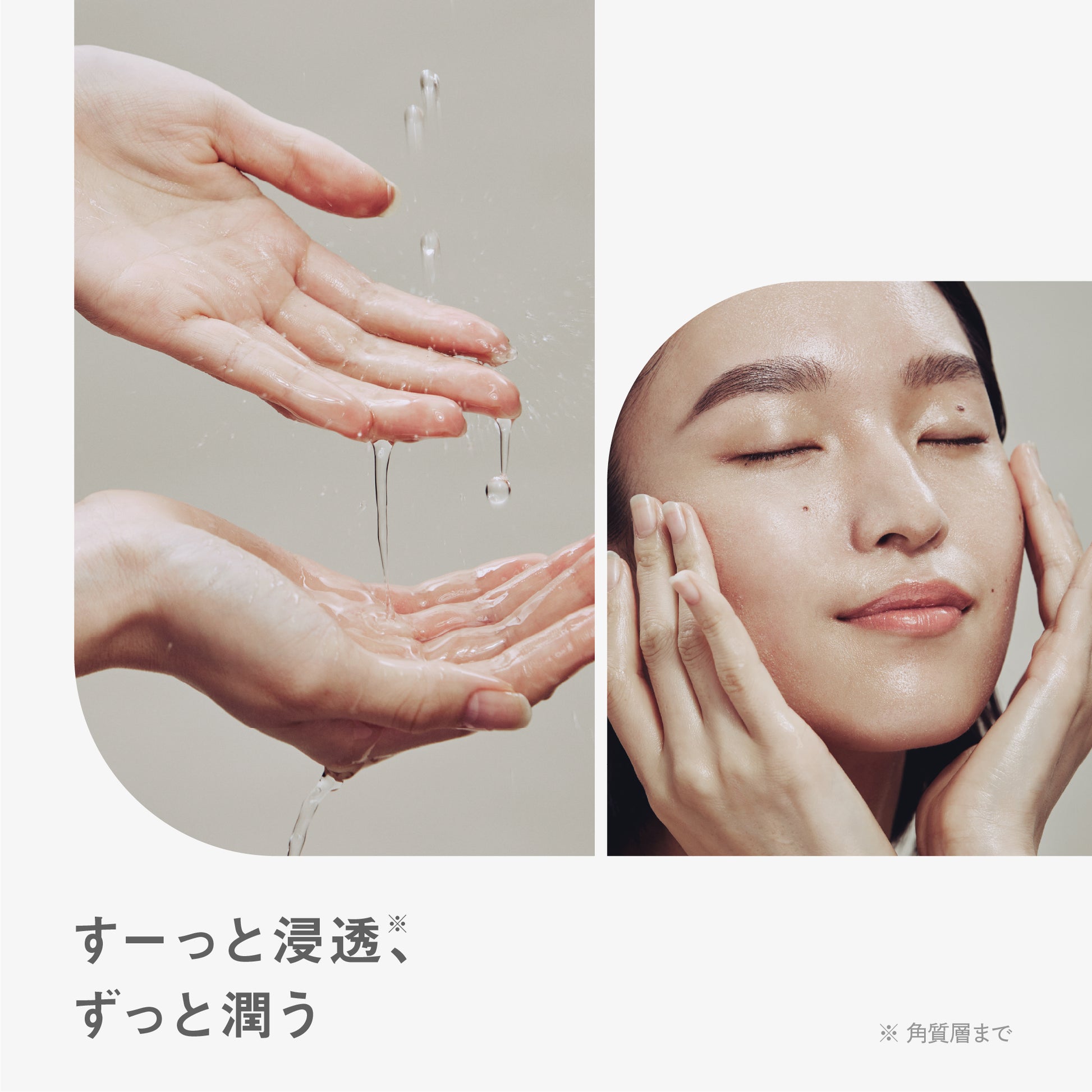 - 素早く肌に馴染み、角質層のすみずみ*1まで潤いをチャージ。高保湿ケアで乾燥によるくすみ*2をケアし、ふっくら瑞々しい透明感とハリのある肌へと導きます。