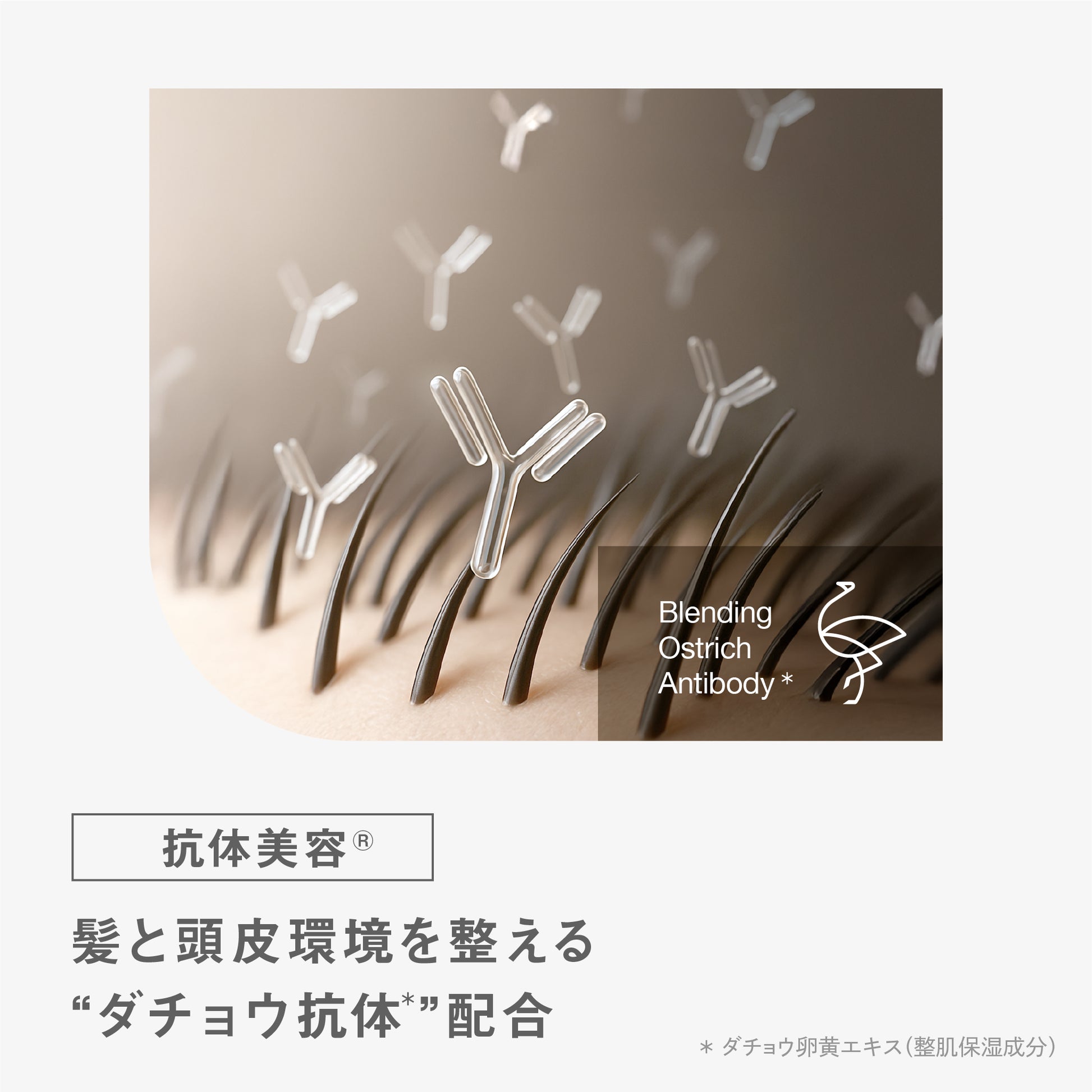 さらに、ダチョウ抗体*1配合により、頭皮環境を清潔に保つことで、より健やかな美髪へと導きます。
