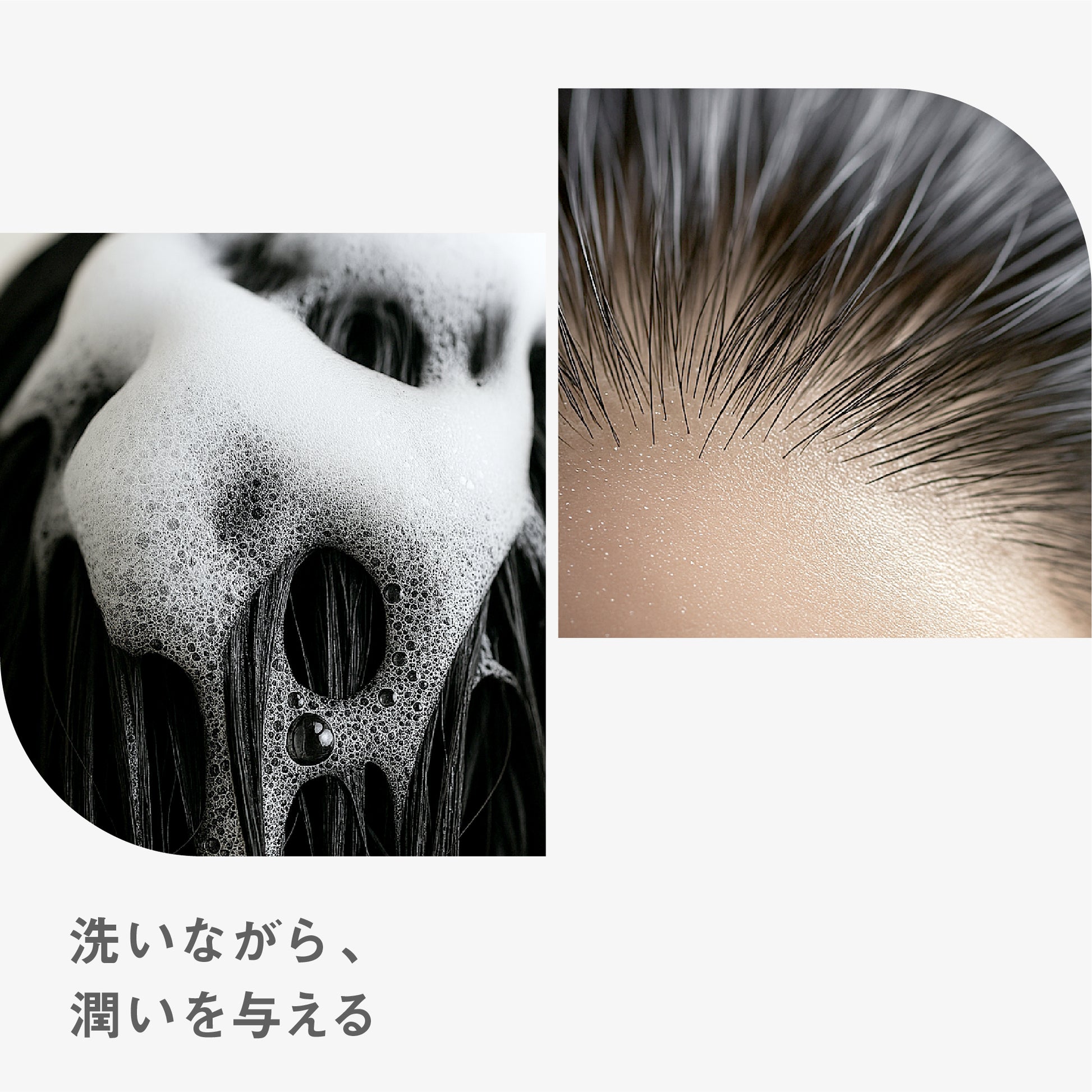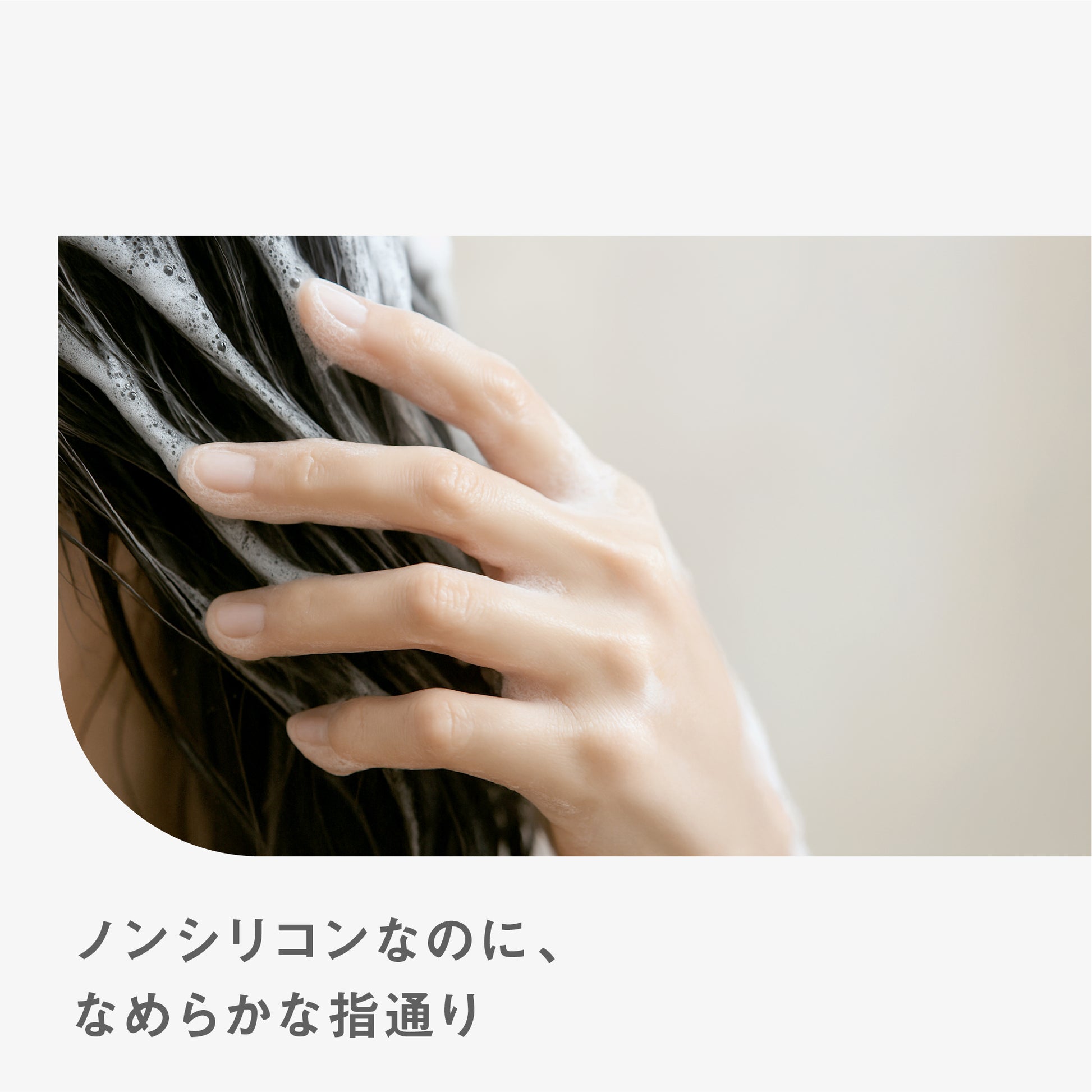 ノンシリコン処方ながら、きしみにくく、指通りのよい洗い上がりを実現しました。